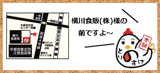 とりのすけ本舗は横川食販(株)様の前です。